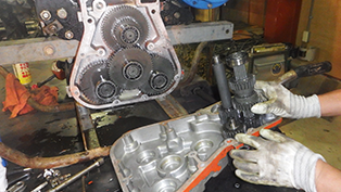 エンジンの構造を勉強するための社内講習会等を実施するなどし、技術力の向上に努めています(右写真)。